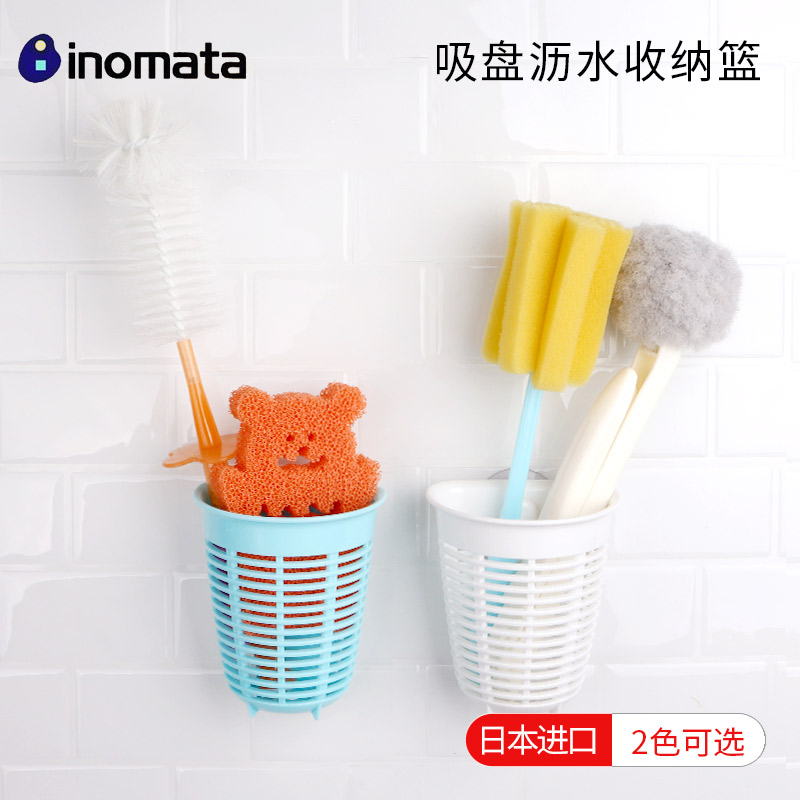 【INOMATA】刷子吸盤收納(藍色/白色)