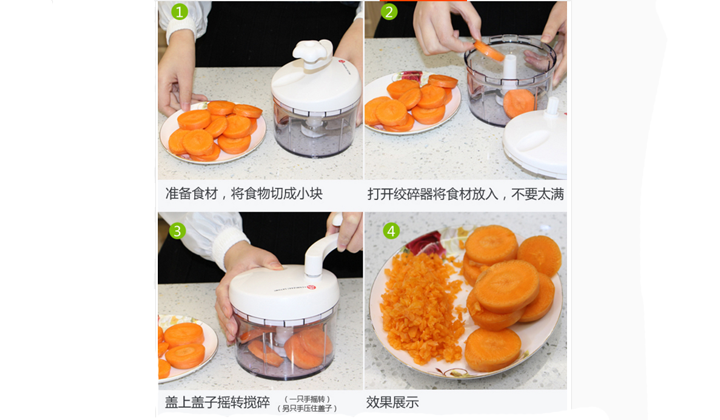 用途:日本進(jìn)口打碎器,可以切碎菜,碎調(diào)料,還可以做兒童輔食。